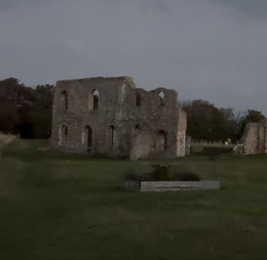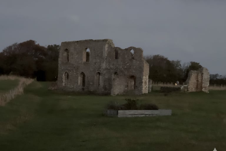 This 13th-century Franciscan priory is one of the few remains of the ancient "lost city" of Dunwich. Paranormal investigators report sightings of ghostly monks and apparitions roaming the ruins and surrounding woods, often accompanied by faint, mournful chanting. Legend also includes the terrifying Black Shuck phantom dog and the rumored distant ringing of sunken church bells from under the sea.